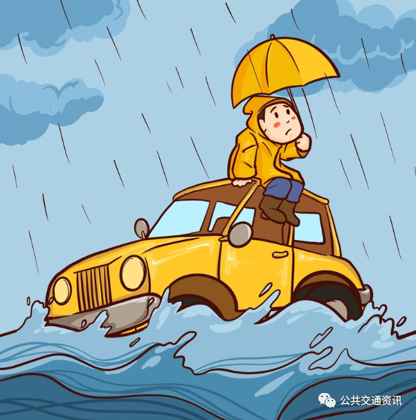 城市發(fā)生洪澇災(zāi)害時(shí),道路積水嚴(yán)重,公路可能被沖毀。若不注意觀察水深,涉水通過積水路段會(huì)導(dǎo)致公交車熄火、被淹,洪水甚至?xí)_走公交車。