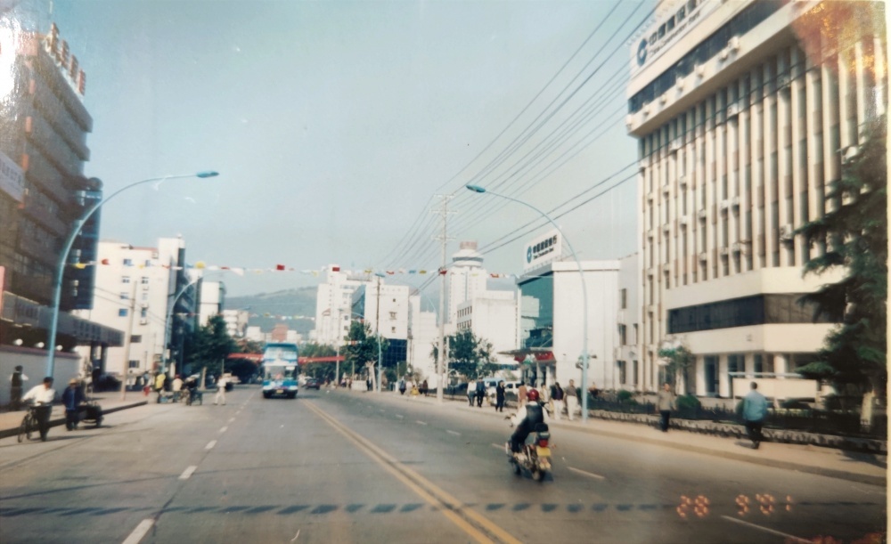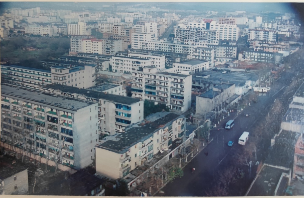▲80年代末,荊門市長(zhǎng)寧大道街景圖。荊門公交集團(tuán)總公司(舊址)位于長(zhǎng)寧大道西側(cè)。當(dāng)年總公司院內(nèi)建有辦公樓、停車場(chǎng)、機(jī)修車間、機(jī)加車間、油庫、倉庫。