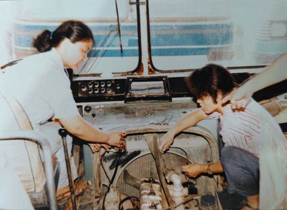 ▲80年代,車間修理工檢修模樣。手上拿著自制試燈(試電筆)檢測著車輛線路,臉上洋溢著那個(gè)年代的笑容,是樸實(shí)、是堅(jiān)毅。女性修理工可不多見。
