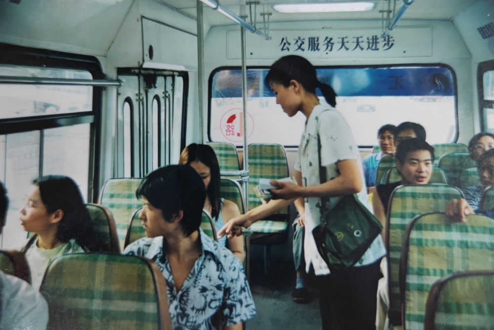 ▲90年代,公交售票員工作模樣??嬷卑种心弥沐X和車票,收錢、找錢、給票、查票行云流水。高峰期數(shù)十人上下車,想要收好票款,無疑是一種考驗(yàn),而她們久經(jīng)考驗(yàn)。