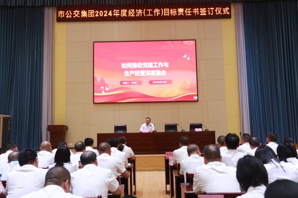 大會(huì)以2024年度經(jīng)濟(jì)(工作)目標(biāo)責(zé)任書的簽訂拉開序幕。隨后集團(tuán)黨委書記、董事長(zhǎng)卞軍虎以《黨建融入生產(chǎn)經(jīng)營(yíng)》為題,為集團(tuán)黨員干部進(jìn)行授課。