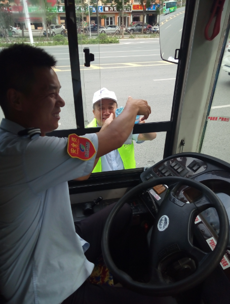 “目前還有小部分線路的公交車是沒有空調(diào)的,就算夏天再熱也得堅(jiān)持,現(xiàn)在天這么熱,一天下來衣服都不知道要濕多少次。今天有他們給我們送來的礦泉水,讓我們司機(jī)在這夏日里體會到了一絲清涼,真的很感謝他們。有了他們的支持和理解,我們更要做好本職工作?!惫患瘓F(tuán)工作人員說。