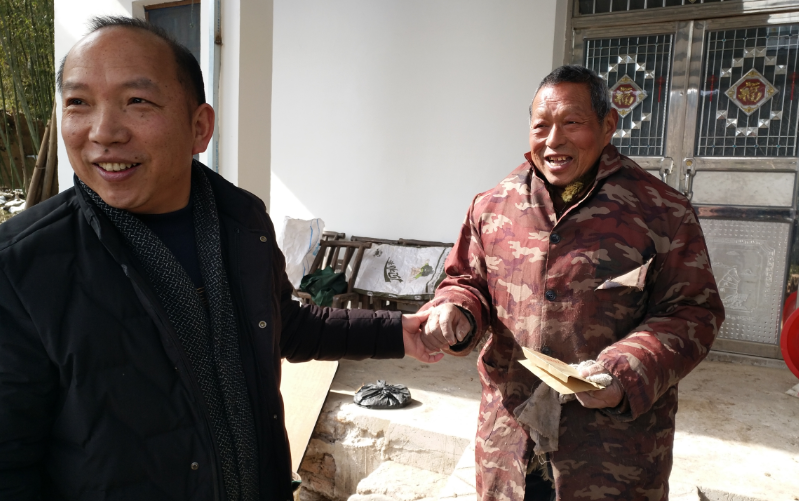 走訪中,扶貧負責人與李召林、李華山、周啟明等村民親切交談,對他們2017年脫貧情況進行了了解,并送上新年慰問金。村民拉著扶貧負責人的手表示了對扶貧組到來的萬分感謝以及黨和國家對他們的關(guān)懷之情。