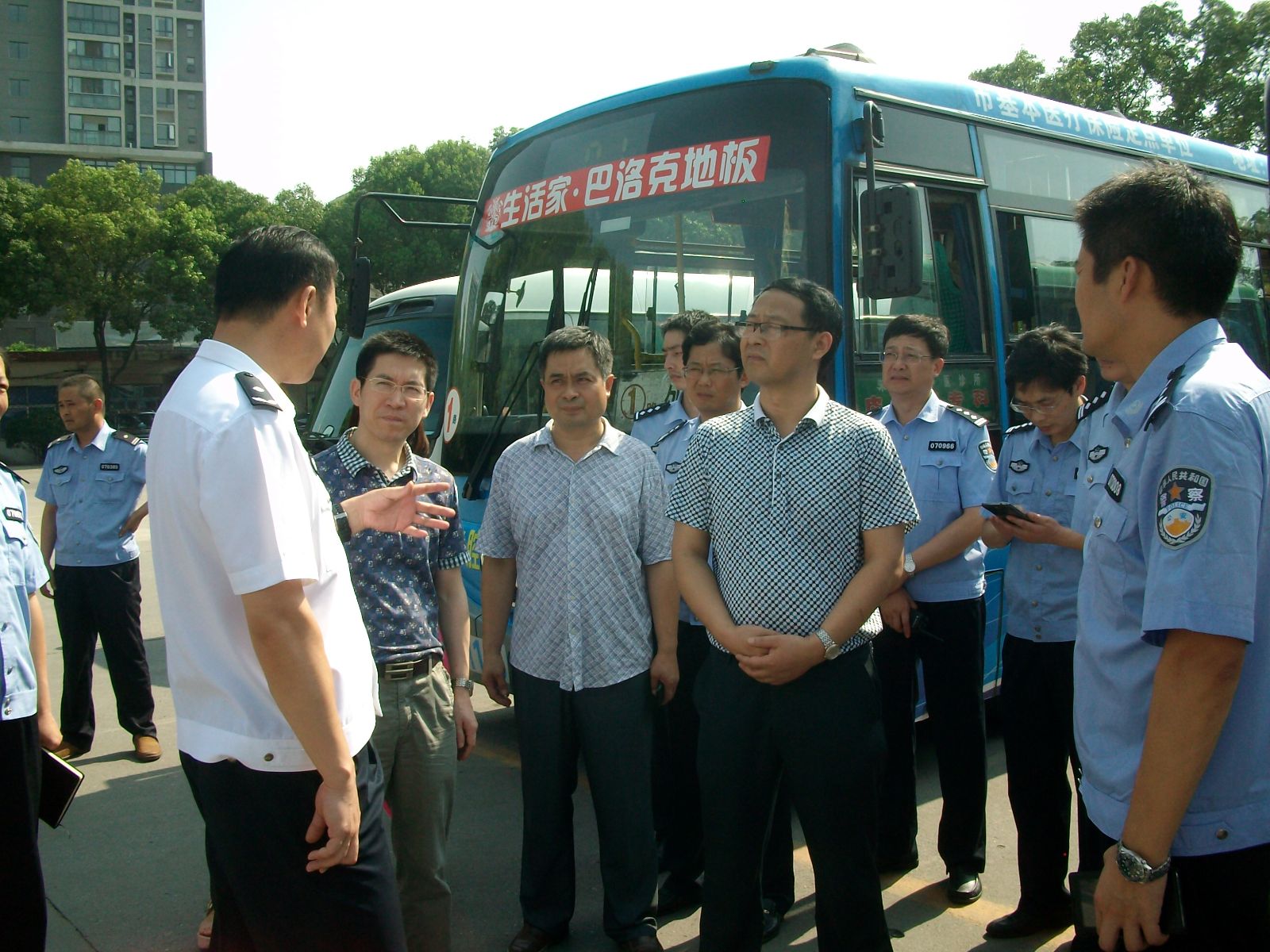 7月21日,副市長、市公安局局長朱高文帶領市公安局副局長王文忠、治安支隊支隊長吳斌鵬、交警支隊支隊長陽勇一行深入公交公司、公交站臺,檢查督導集團公司公交安全工作。