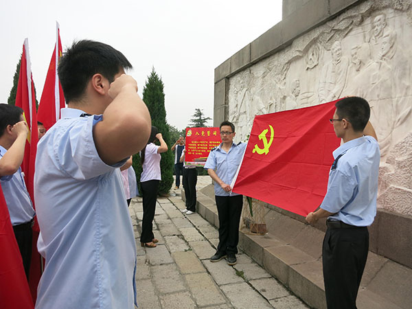 登山比賽結(jié)束,集團公司黨委組織全體黨員在烈士陵園的革命烈士紀念碑下肅立,舉行莊重的入黨宣誓。在齊唱《中華人民共和國國歌》之后,今年剛轉(zhuǎn)正的黨員周小艷、孟津平、劉斌、何俊、董丁奧5名同志,以及王雄峰、江志剛、陳荊梅3名預備黨員,舉行了入黨宣誓。隨后新黨員代表王雄峰同志代表全體黨員發(fā)言。接著,公司黨委副書記、紀檢書記文勁同志代表黨委致辭。最后,公司黨委書記龐守江為本次慶七.一登山比賽獲得名次的同志頒發(fā)了獎品,并要求全體黨員要牢記入黨誓詞,踐行黨員義務,以黨員的標準嚴格要求自己,充分發(fā)揮黨員的先鋒模范作用, 為實現(xiàn)荊門公交跨越發(fā)展和中華民族的偉大復興貢獻自己的力量,無愧于中國共產(chǎn)黨員的光榮稱號!